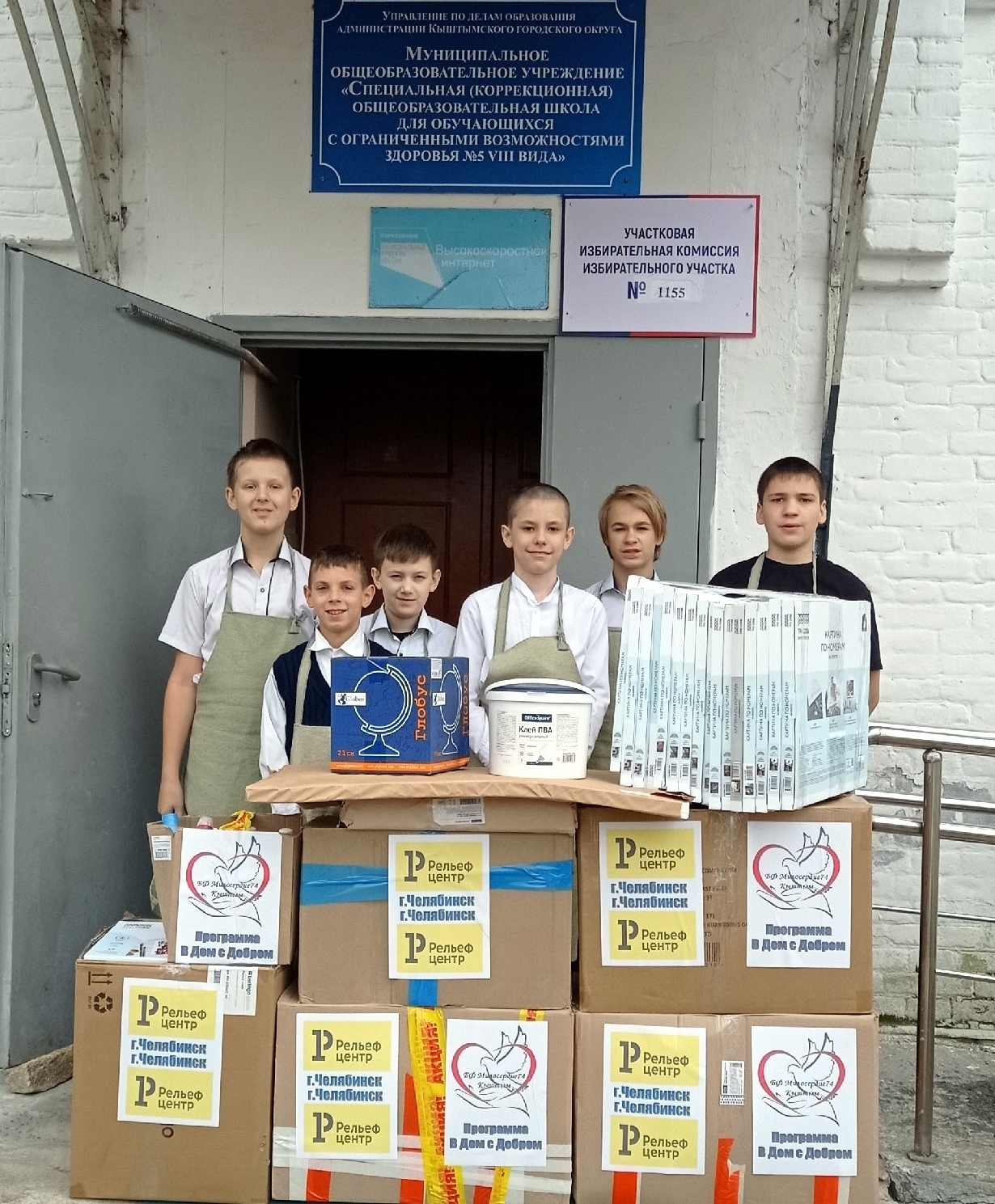 В рамках программы фонда "В Дом с Добром" приезжали в МОУ СкОШ№5 Кыштым. Передали на благотворительной основе канцелярию для внутреннего использования в деятельности организации.